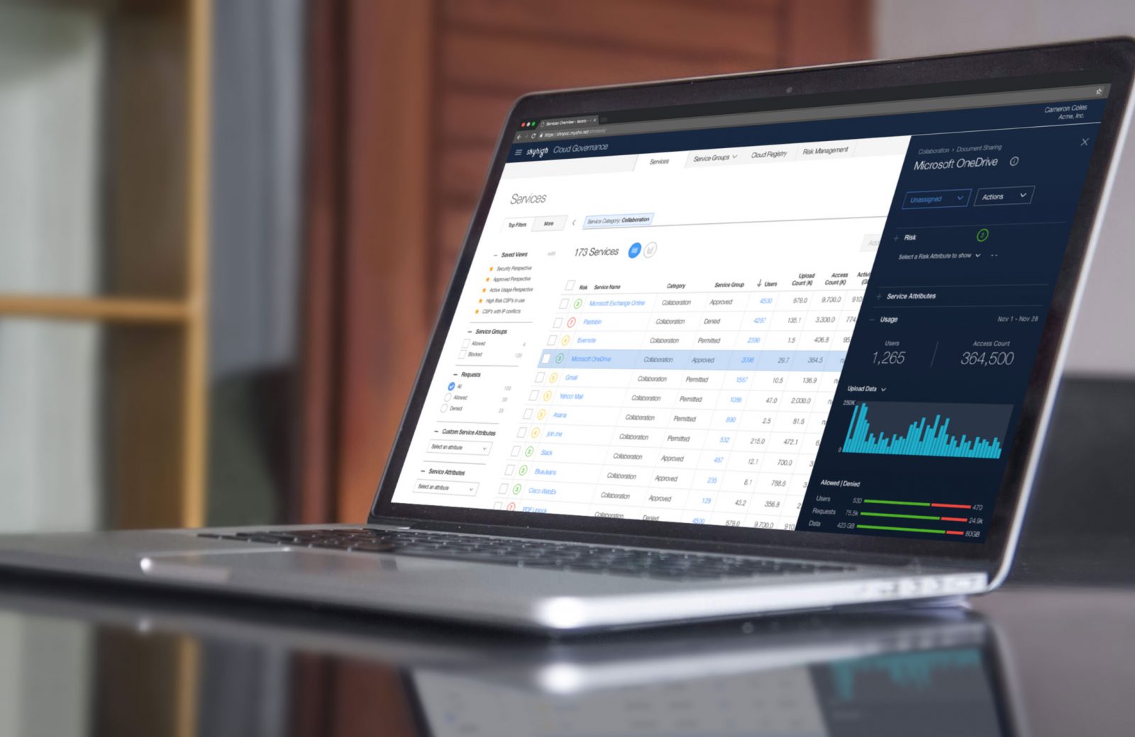 Gain continuous visibility into cloud usage and risk, understand data flowing outside the organization, identify gaps in policy enforcement, and enforce governance policies